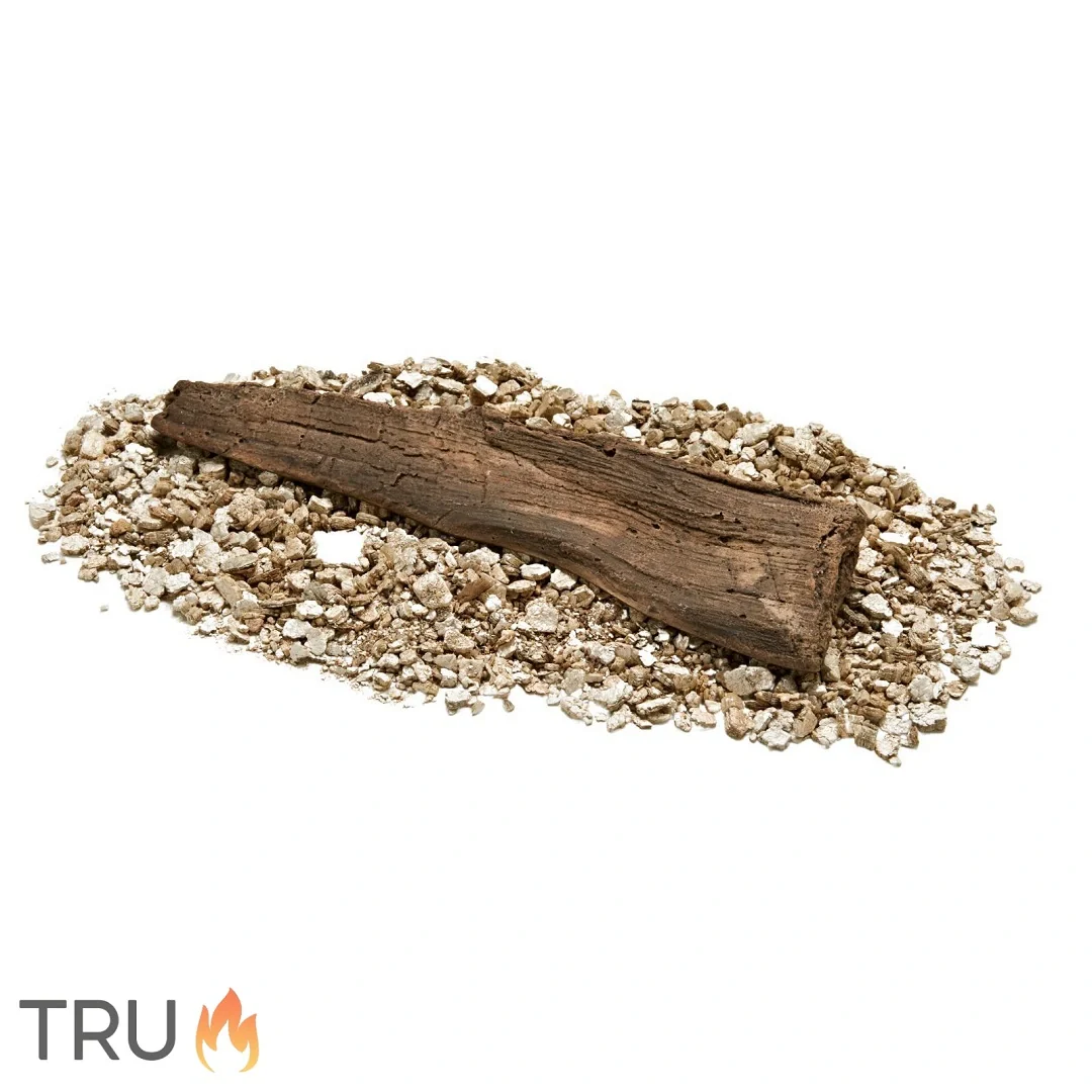✓ Ember bed consists of ceramic loose logs, small clean crystals, dark tea crystals, and large clean crystals.
