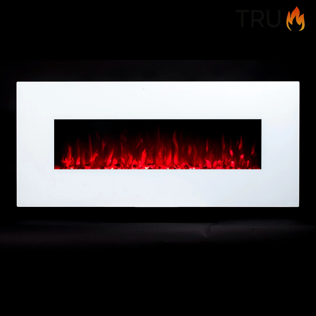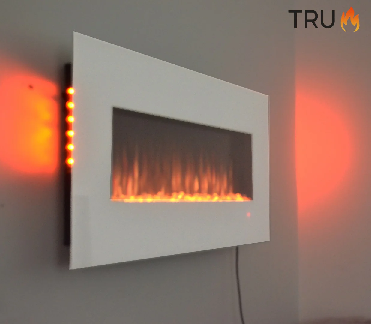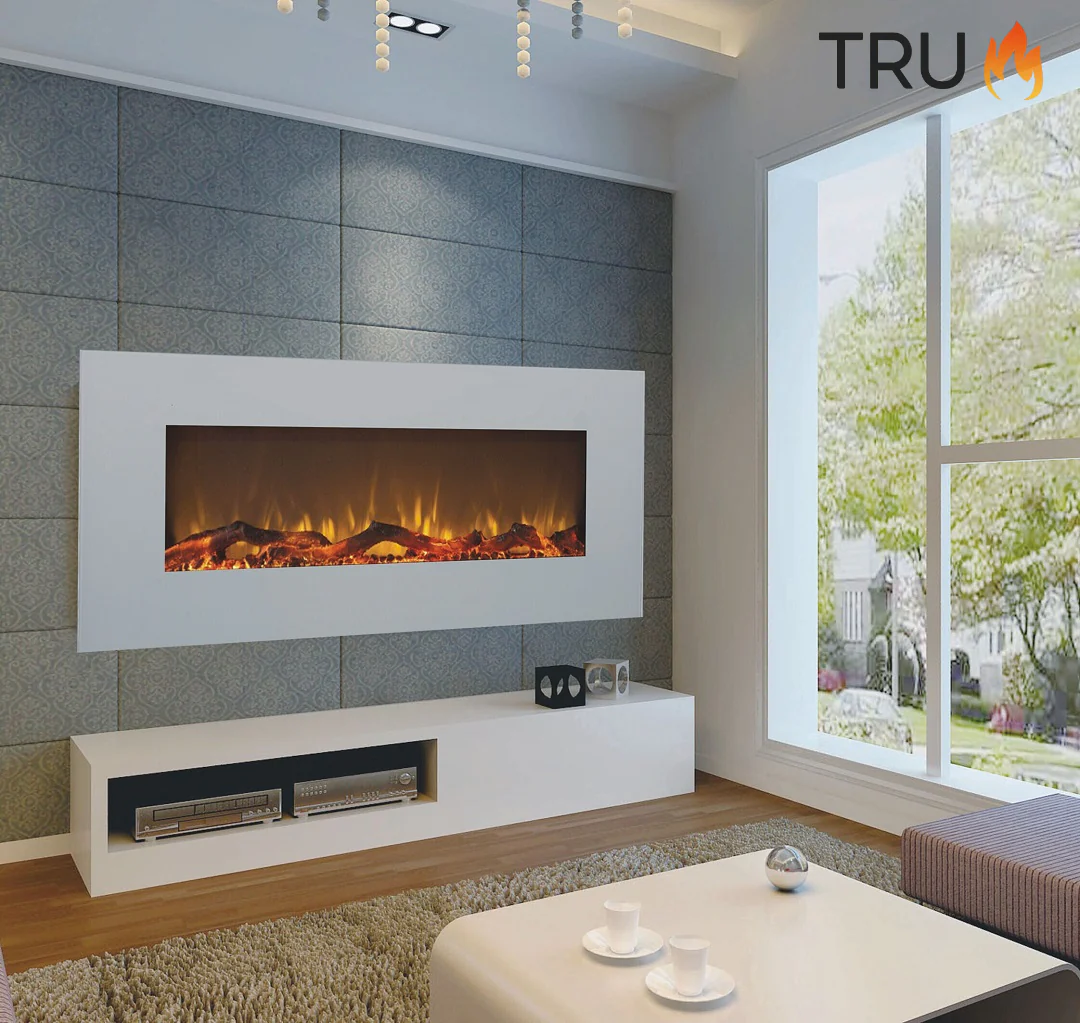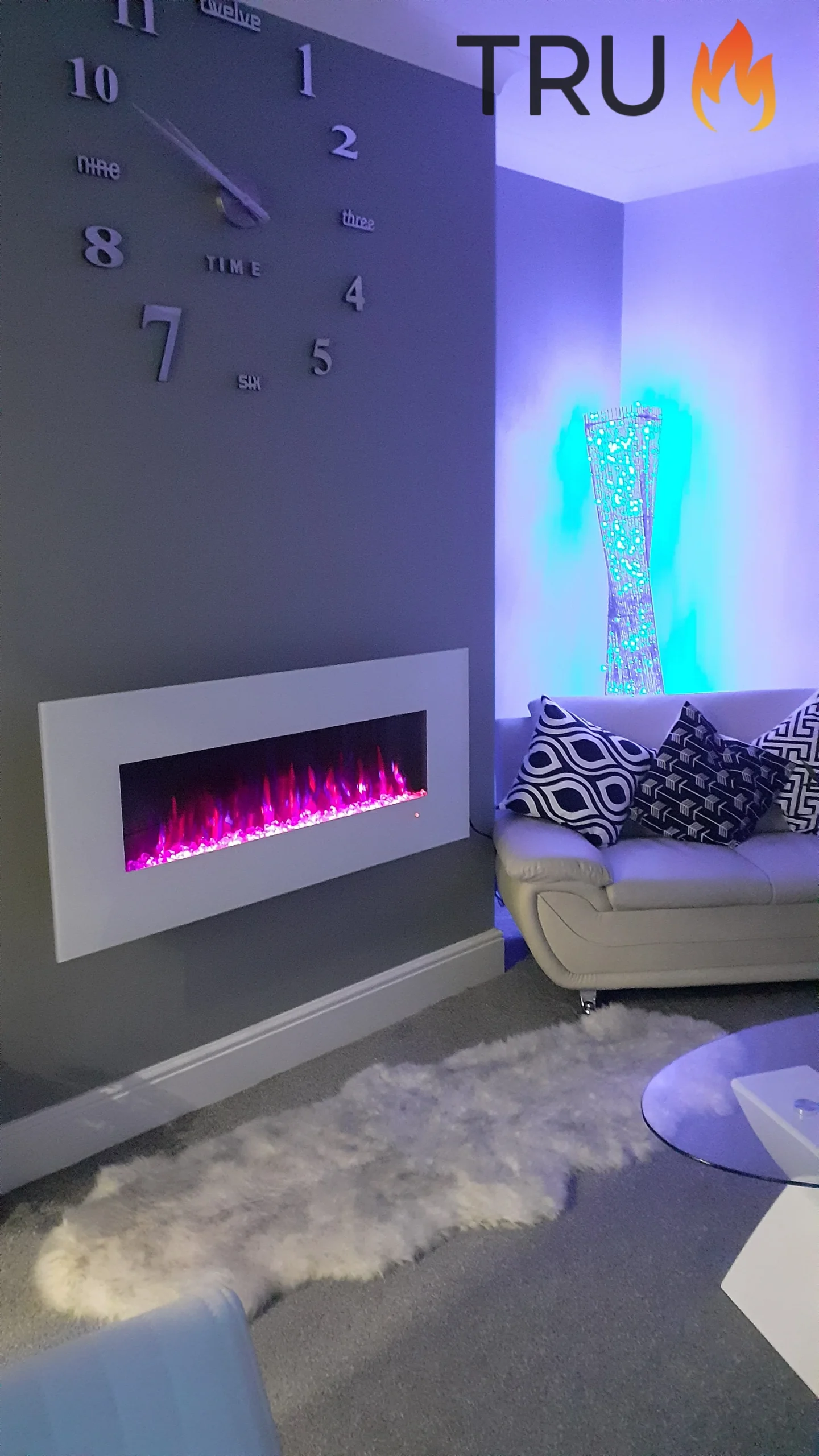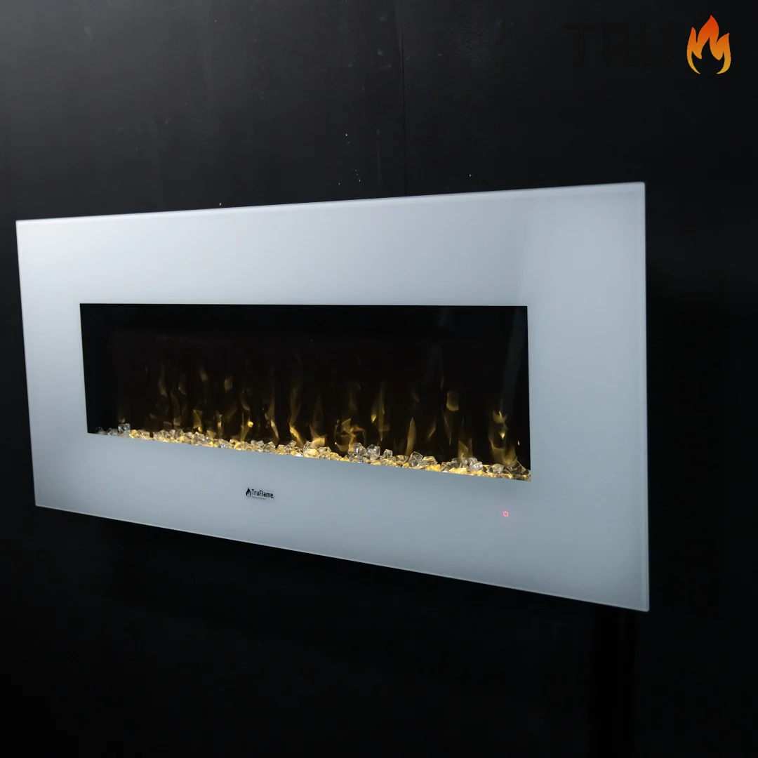 The only TruFlame™ 50inch wide white glass electric fire on the UK Market – Don`t be fooled by putting inferior models in your stunning home.