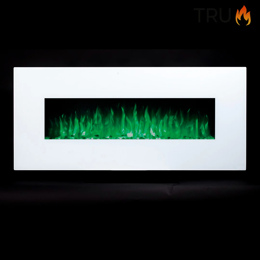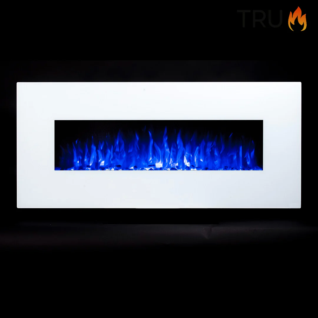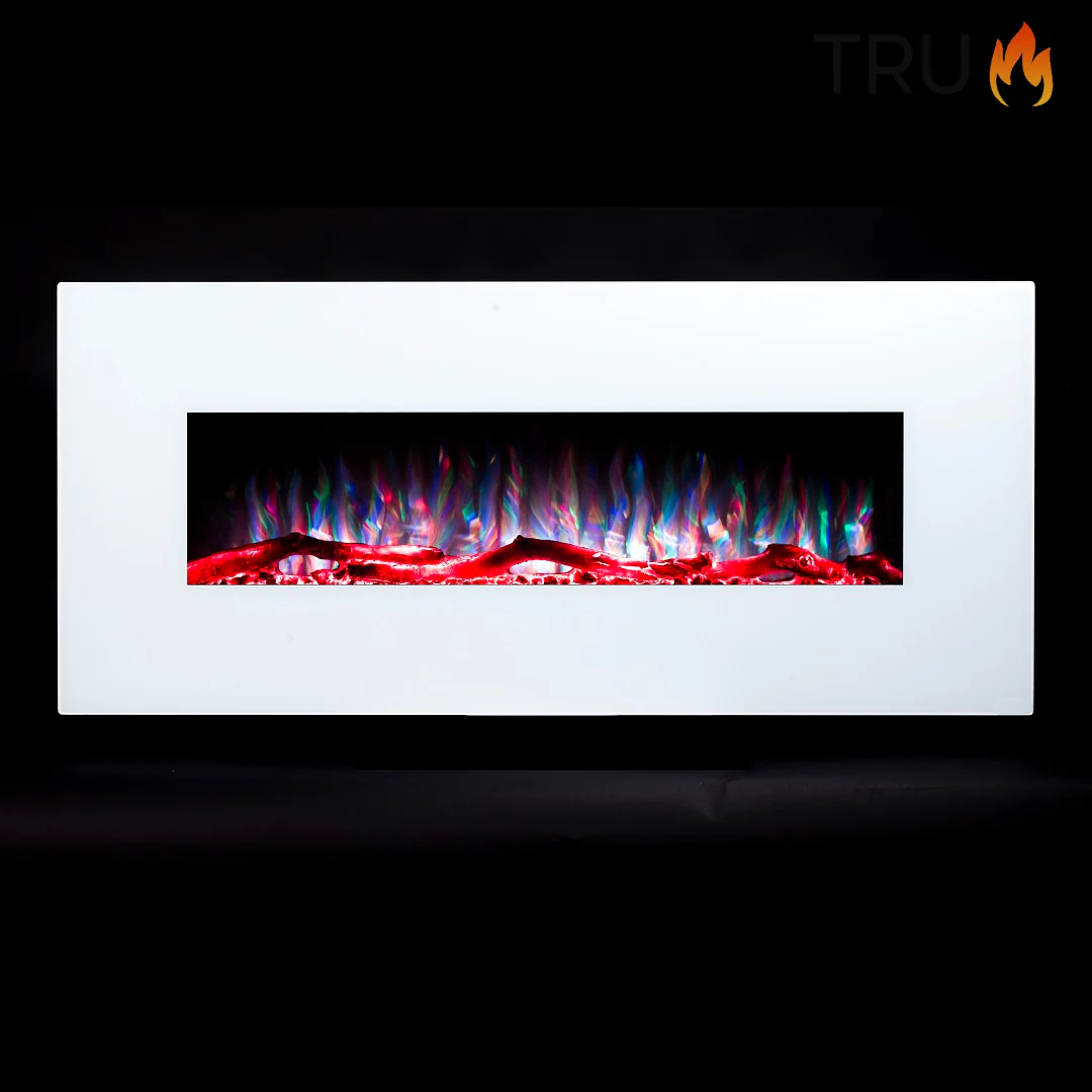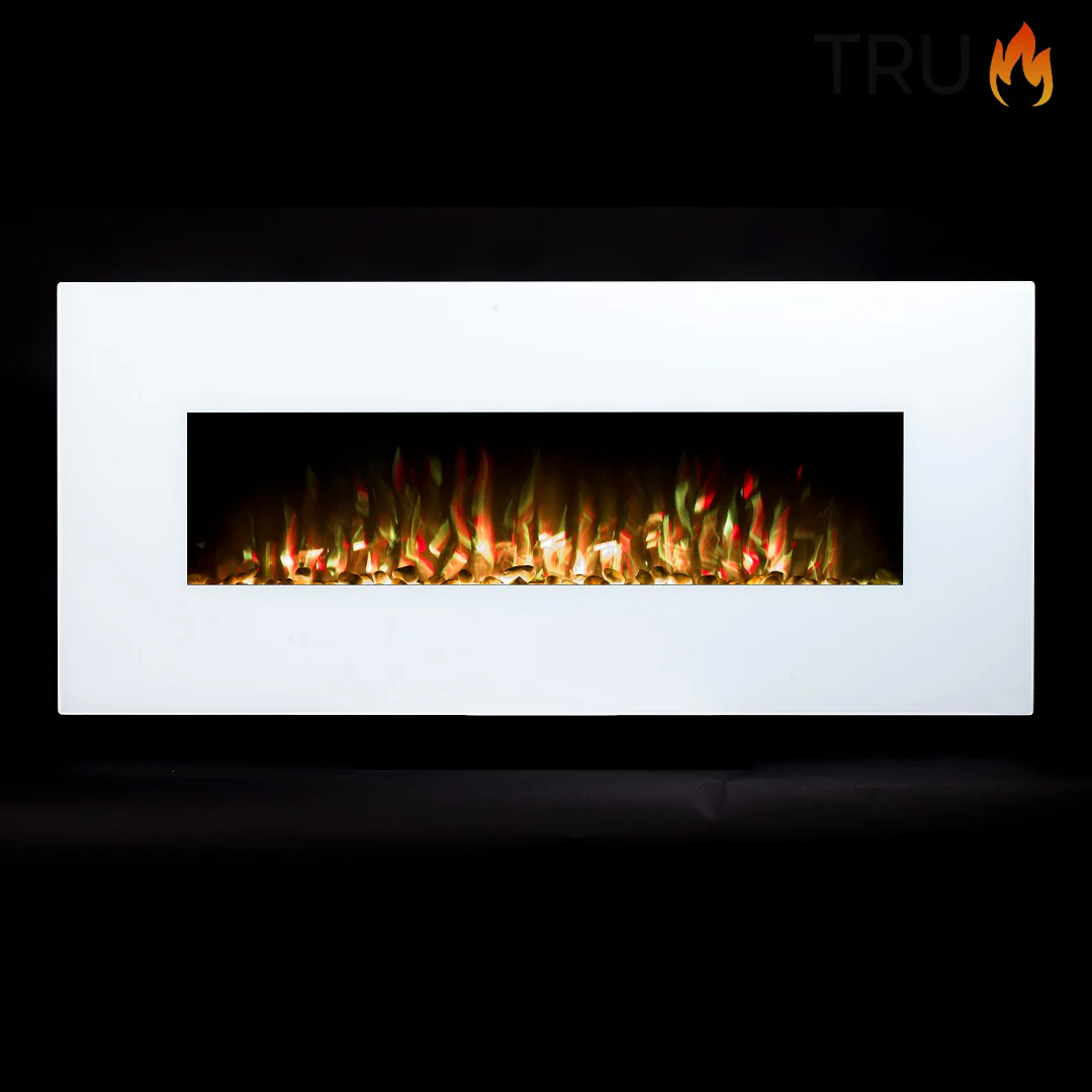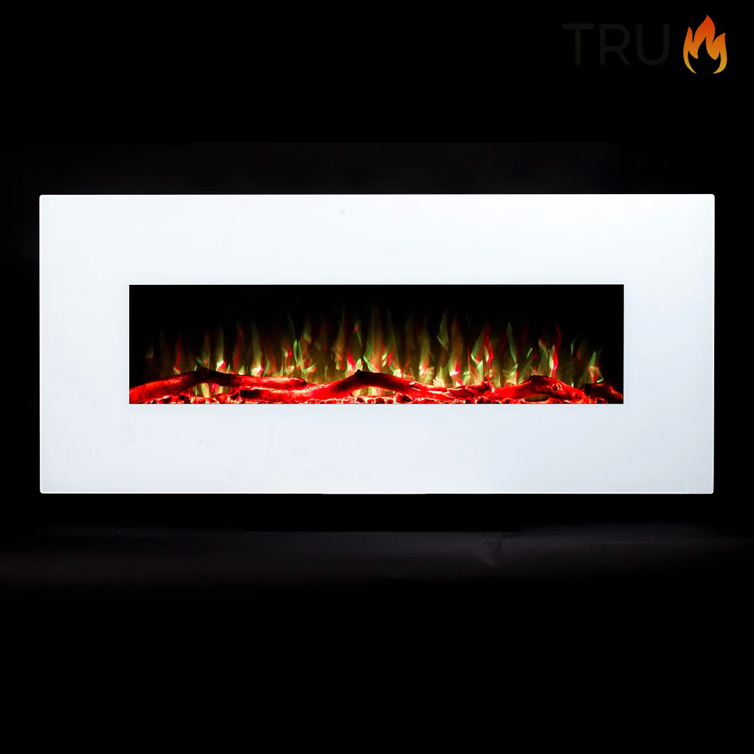 The only TruFlame™ 50inch wide white glass electric fire on the UK Market – Don`t be fooled by putting inferior models in your stunning home.
