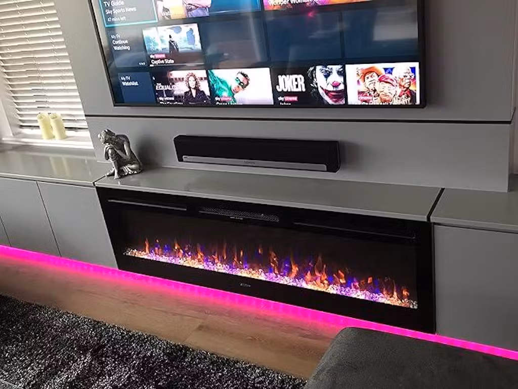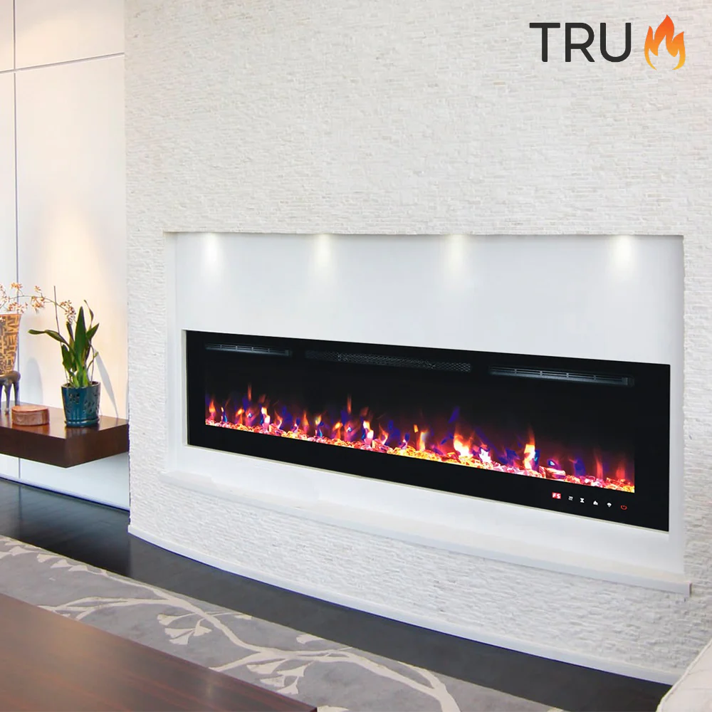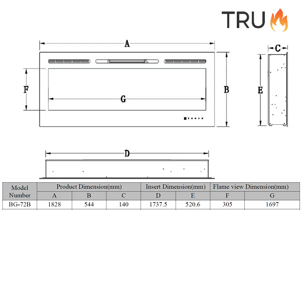 The only TruFlame™ 72inch wide insertable black glass electric fire on the UK Market – Don`t be fooled by putting inferior models in your stunning home.